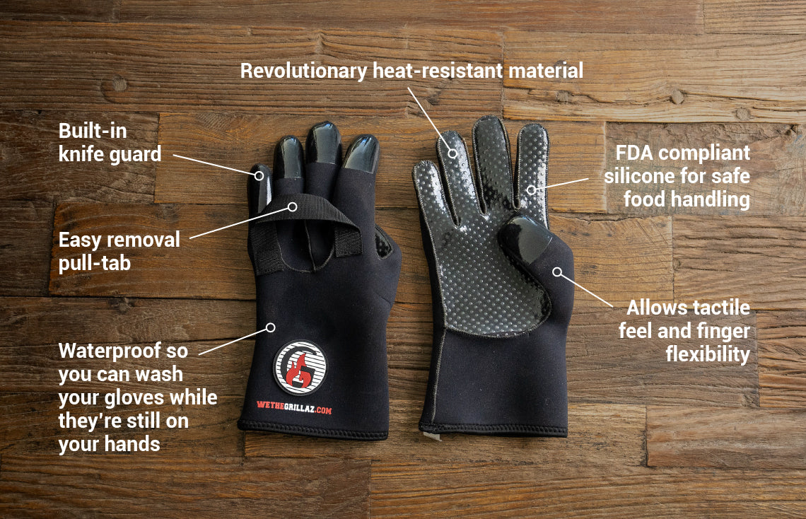 Most fire-proof grilling gloves are called “mitts” for good reason – they limit you with the flexibility of a pair a winter mittens. Grillaz changes the outdoor cooking game by letting you work close to a hot fire without limiting your ability to grab, feel, rub, cut, brush, rotate, stick, pinch, twist, flip, and open!